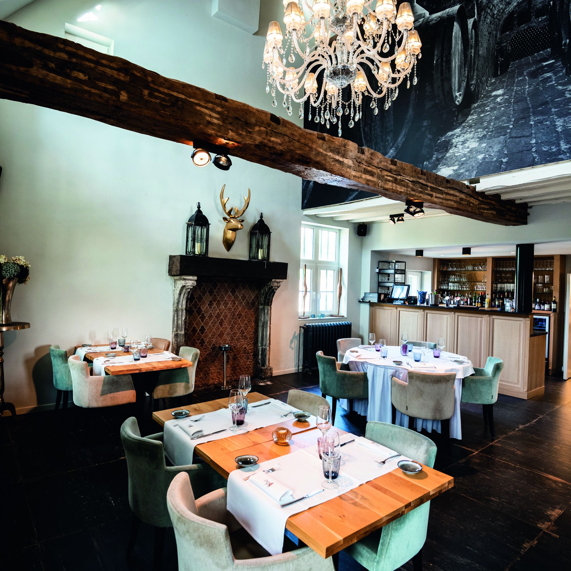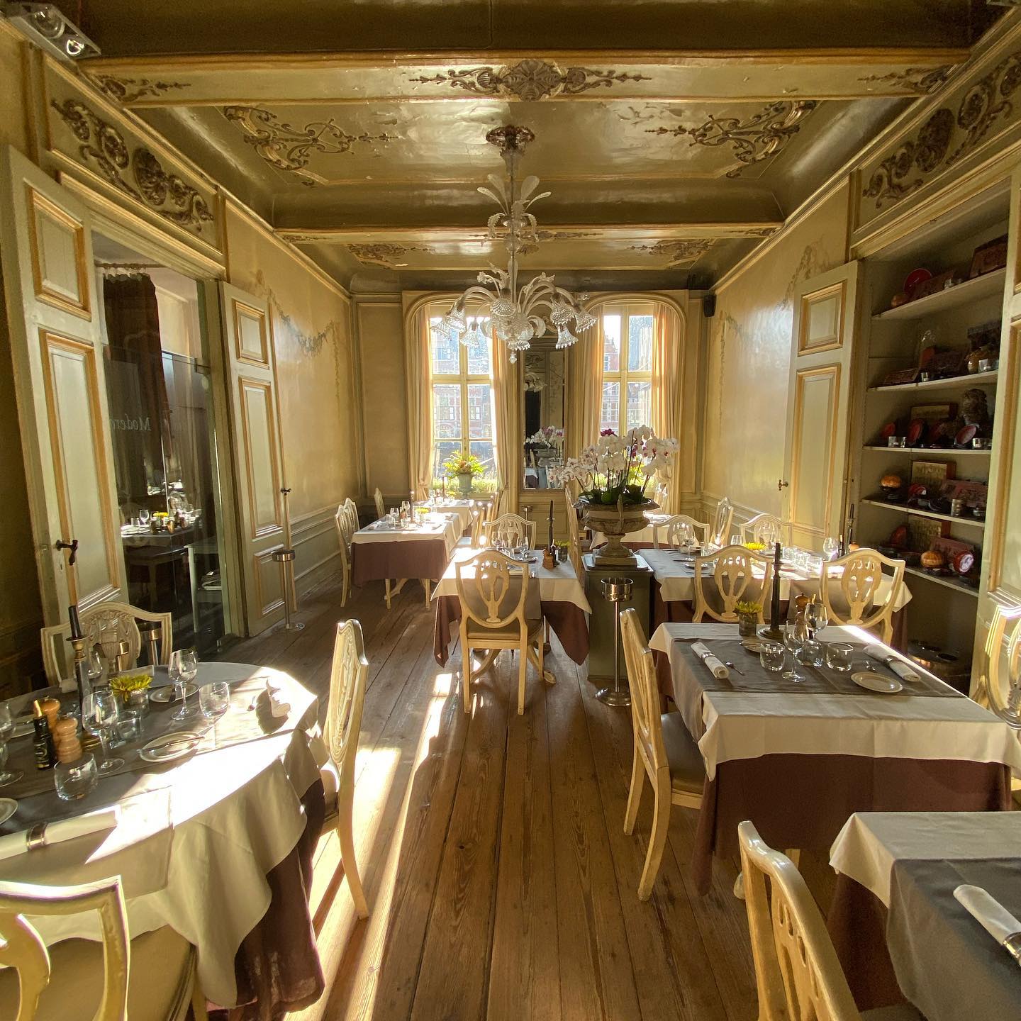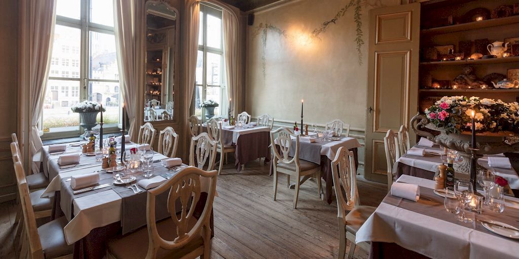 Om helemaal in de sfeer te blijven van de tijd van gilden en ambachten, kan je in het restaurant zelf muurschilderijen vinden naar 18de-eeuws model en wordt er klassieke muziek gespeeld.