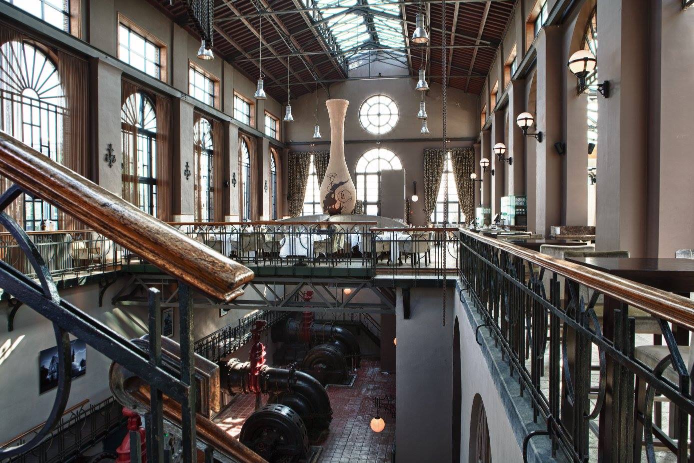 Dit indrukwekkende restaurant werd oorspronkelijk gebouwd in 1918 en diende tot 1982 om het droogdok leeg te pompen zodat een schip onderhouden, geladen en gelost kon worden. Zo ook de boten van de Red Star Line (o.a. "Belgenland") die van Antwerpen naar New York voeren! De 3 reusachtige gietijzeren installaties waren in zijn tijd één van de grootste van Europa en konden in 2 uur het droogdok leegpompen. Ze zijn nog steeds te bewonderen tijdens het eten.