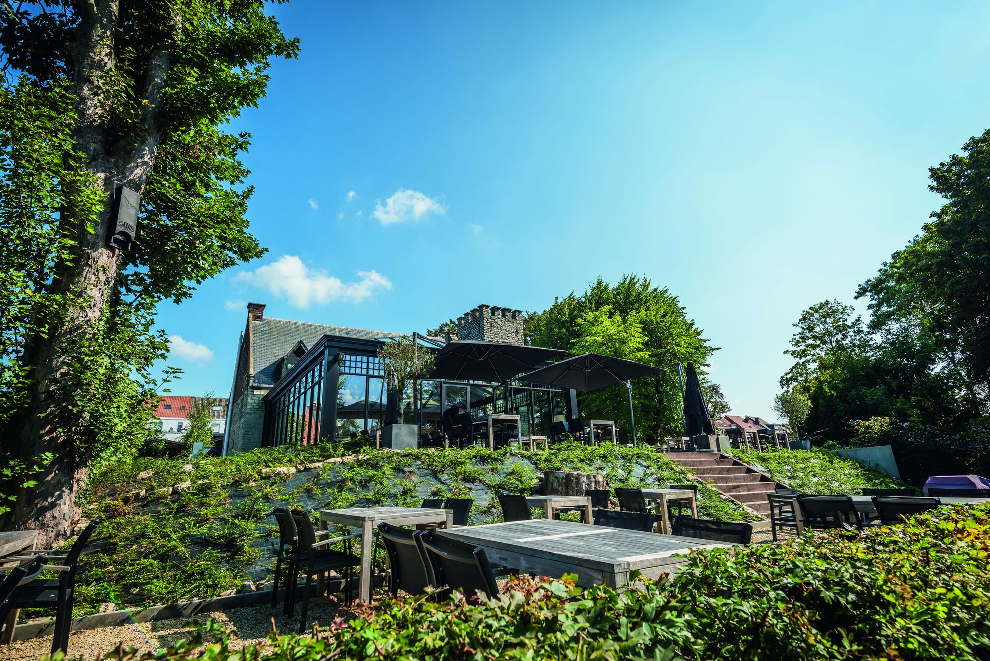 Het gloednieuwe restaurant Puncho (juli '21) is gelegen in het historische donjon-gebouw en wordt omringd door een park met een vijver. Een donjon is een middeleeuwse verdedigbare woontoren gemarkeerd door een gekanteelde vierkante hoektoren. Historici hebben de oorsprong van dit gebouw terug kunnen leiden tot zeker 1512 toen het een hoeve of jachtpaviljoen was van de heren van Diegem, maar het kan zelfs teruggaan tot het midden van de dertiende eeuw als een laatste overblijfsel van de 's-Hertogen Molen.