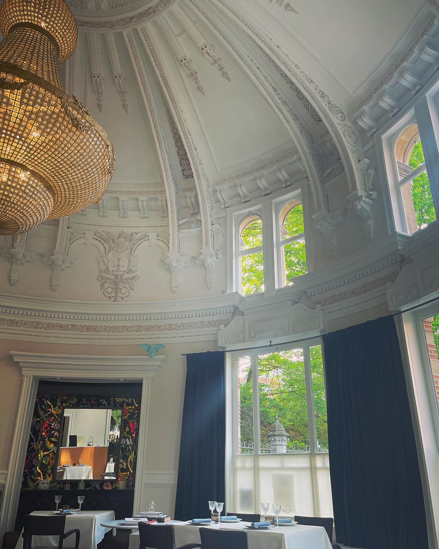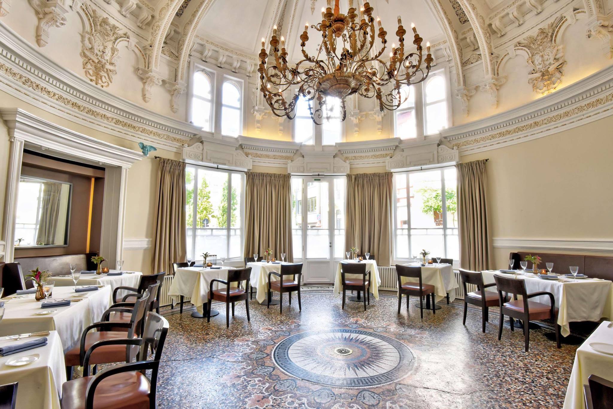 Niet alleen het gebouw zelf, maar ook het interieur is prachtig. De tafeltjes staan onder de koepel die ook van binnen rijkelijk afgewerkt werd, met hoge ramen, een prachtige vloer en een grote luster om het af te maken.