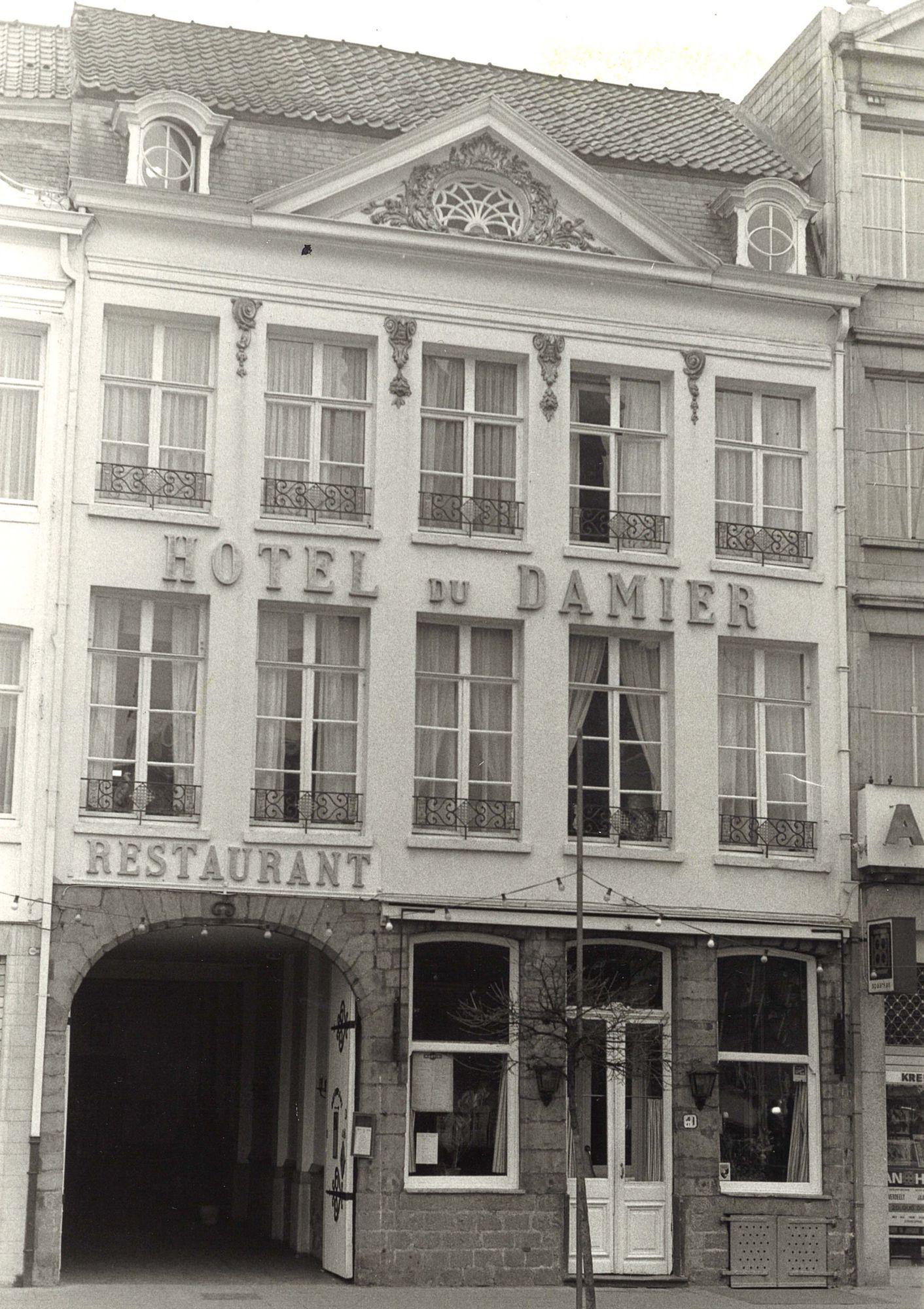 Centraal gelegen op de Grote Markt, springt Damier meteen in het oog. Zeker door het smeedijzeren uithangbord van twee leeuwen die een schaakbord dragen, de vergulde Franse balkons en de grote koetsdoorgang. Bovendien werd het interieur tientallen jaren geleden gemaakt door de bekende meubeldesignzaak De Coene, wat het ook een kunstzinnige waarde geeft.